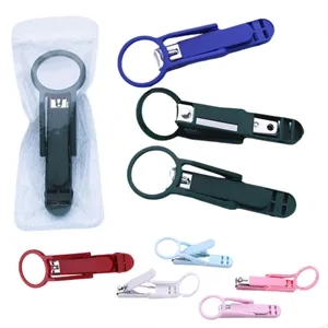 Nail clipper with built-in magnifier and non-slip ABS handle for safe, precise cutting perfect for seniors and babies. "