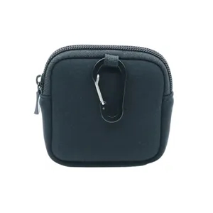 Compact neoprene earphone case with zipper and carabiner; protects earbuds, cables, and small itemscustom logo printing available.