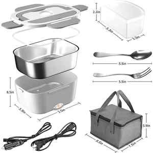 60W High-Power Portable Microwave Food Heater Electric Lunch Box with Detachable 304 Stainless Steel Container Fork and Spoon.