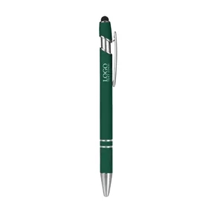 Silver Matte Pen w/Stylus, Colored Rubber Grips & Accents