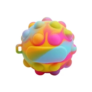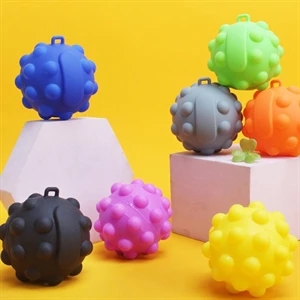 2.44" x 2.44" x 2.44" silicone tie-dye stress balls with fidget dots and keychain loop.