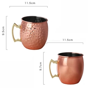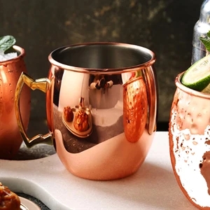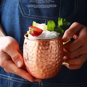 3.35" x 3.35" x 3.74" copper and stainless steel Moscow Mule mug with axe shaped handle.