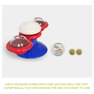 Custom cat toy with catnip chamber, LED ball, and suction basefun, interactive, and great for dental health. Logo customizable.