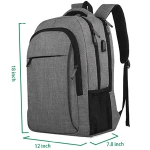 Water-resistant laptop backpack with USB port, anti-theft pocket, and ample storage. Custom logo available.