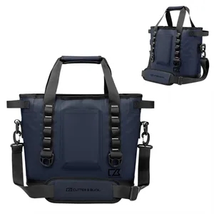 18-can cooler tote bag with side handles and adjustable/detachable padded shoulder strap.