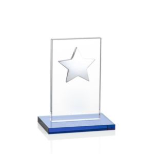 This illustrious Starfire Crystal award stands upright on an elegant Sky Blue base and is adorned with a Silver star