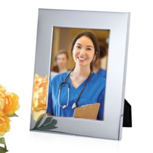 Polished silver frame.