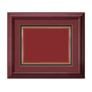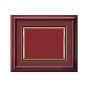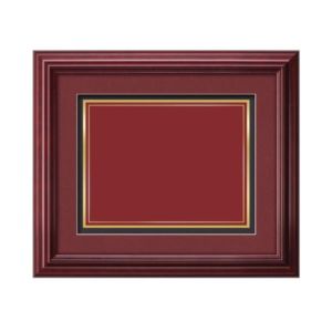The mahogany finished wood frame of the Darlington award is complimented by a deep burgundy double matte.
