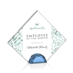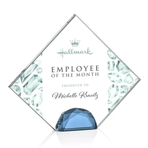 The Deerfield award features a Starfire Crystal diamond wedged between two Sky Blue diamonds. Let your message POP with VividPrint