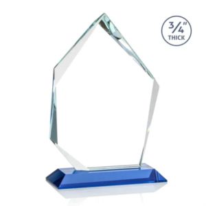 The Deerhurst Ice Peak in 3/4" thick Starfire Crystal features deep intricate bevels that interchange and intersect.