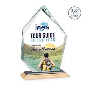 The Deerhurst VividPrint™ Ice Peak Award on Bamboo Base features **3/4" thick** Starfire Crystal features deep intricate bevels.