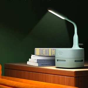 87mm x 87mm x 115mm ABS plastic desktop vacuum cleaner with desk lamp.