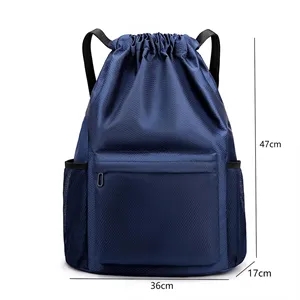 Waterproof lightweight reusable nylon drawstring backpacks for school, gym, homeless care.