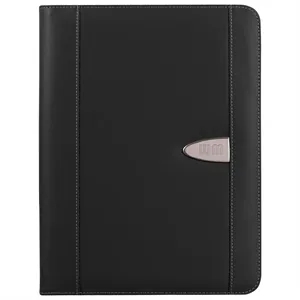 Bonded leather 8 1/2" x 11" zipper portfolio with calculator.