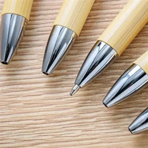 Eco-friendly bamboo ballpoint pen with metal clip and chrome accents. Perfect for office, events, and promotional branding.