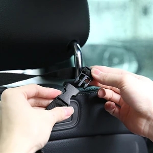 7.09" x 4.72" x 14.96" Oxford cloth automobile hanging trash can with strap and sliding plastic buckle closure.