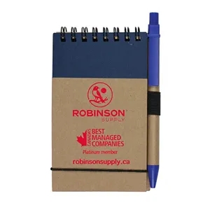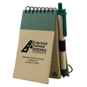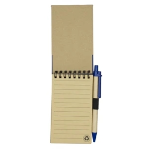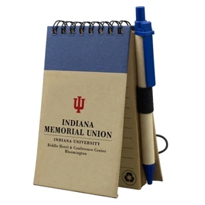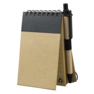 Recycled notepad with recycled paper pen and 50 sheets of recycled lined paper.