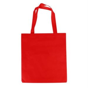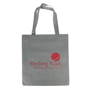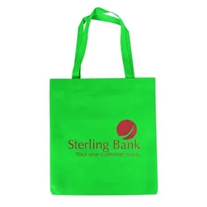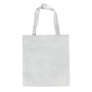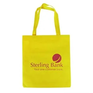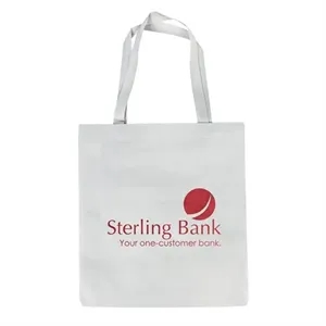 13.5" x 14" tote bag with a non-woven and water-resistant design and handles.