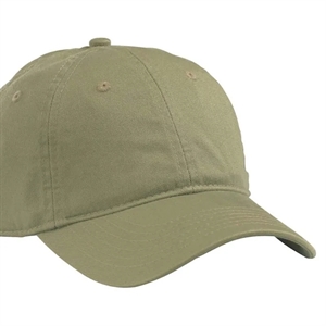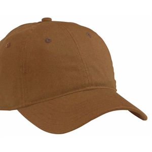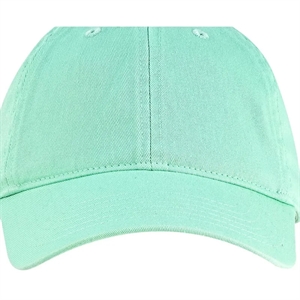 Baseball cap with 6-panel construction, sewn eyelets, self-fabric closure, brass slider, and tear-away label.