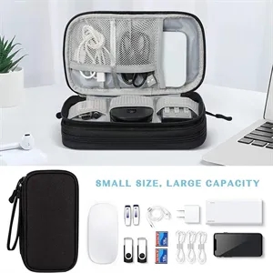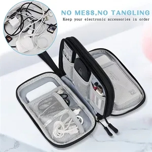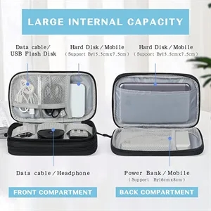 7 1/2" x 4 3/10" x 2 1/5" polyester technology multi-level organizer with netted compartment, zipper closure and strap.
