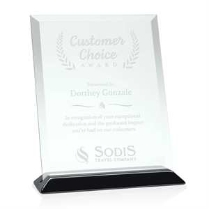 The prestigious Jade Crystal Embassy Award reflects timeless beauty with its deeply beveled edges.