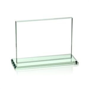 Rectangular, horizontal 1/2-inch thick jade color upright award with a base.