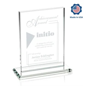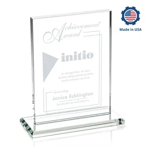 The Emperor Award is a simple yet elegant 0.5" thick Starfire Crystal rectangle upright mounted vertical or horizontal on base.