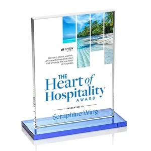 The Emperor VividPrint™ Award is a simple yet elegant 0.5" thick Starfire Crystal rectangle on base.