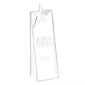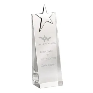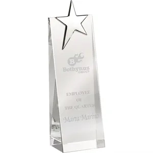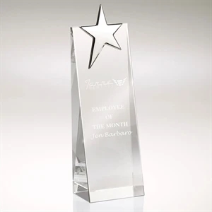 2" x 8.5" x 2.75" Estrela silver star tower crystal award.
