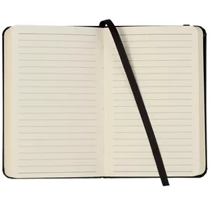 3.5" x 5" pocket bound journal with elastic closure, expandable accordion pocket, ribbon page marker and 80 sheets of lined paper.