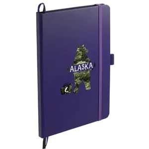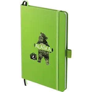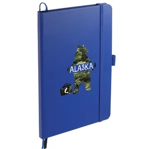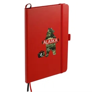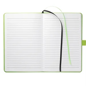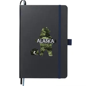 5.5" x 8.5" bound journal with hard cover and 80 sheets of white FSC®-certified, soy-based ink lined paper.