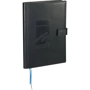 7" x 10" leather journal with hard over, 128 lined pages, ribbon page markers and magnetic tab closure.
