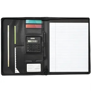 Leather Look 8 1/2" x 11" Zippered Portfolio With Calcul...