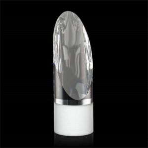 The Faccini combines clear with white in this optical crystal cylinder with a crisply angled top to give contemporary drama