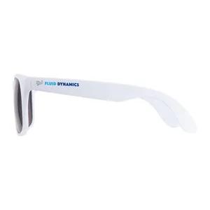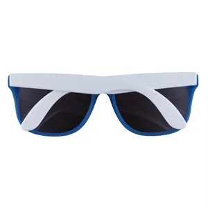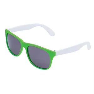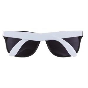 1.75" x 1.94" x 5.5" polycarbonate flare two-tone sunglasses with 100% UVA and UVB protection.