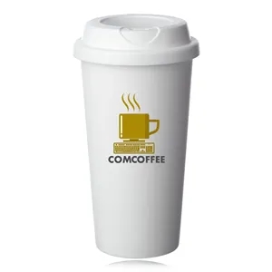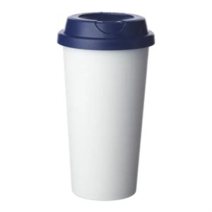 16 oz. insulated plastic coffee tumbler with matte color finish and screw on lid with sip hole.
