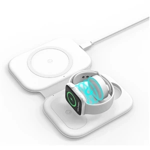 The wireless charging pad can also be folded into a simple charging station when used alone.