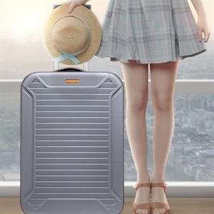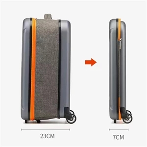 20.47" x 9" x 14.17" PC and ABS plastic folding suitcase with wheels and telescoping handle.