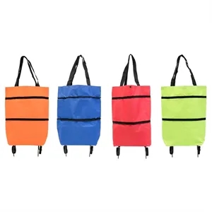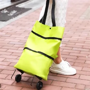 Convertible shopping tote with foldable wheels and carry handles. Ideal for retail promos, groceries, and eco-friendly branding.