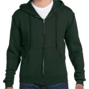 Sweatshirt with a tagless label, single-ply hood, drawcords, full-zip, and pockets.