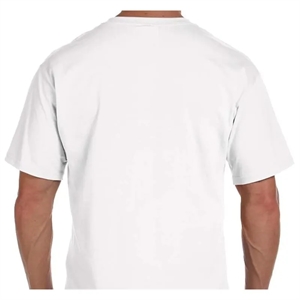 Unisex pocket t-shirt with double-needle stitching, left chest pocket, and shoulder-to-shoulder tape.
