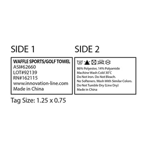 16" x 25" 320GSM polyester/polyamide sports towel with waffle weave construction and reinforced hanging slit.