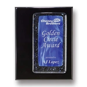 Art glass on ebony piano finish plaque.