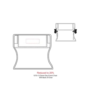 Locations: Back of chair backing, - centered on strap across back, Front of chair, - Centered on front of chair 1" down from top, On Bag, Opening left, Handle top, - Centered on bag below handle