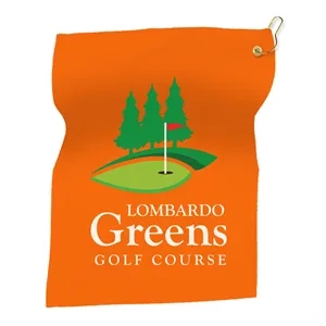 15" x 18" Hemmed Terry/ Velour Rally Towel with Grommet and Ring Clasp. 100% Cotton 270 GSM. Available in Bright Colors