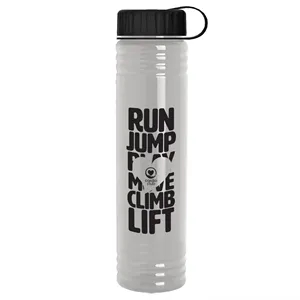 Slim Cylinder Design. 32 oz Transparent Sport Bottles with Tethered Lid. Wide Opening for Easy Ice-filling.
