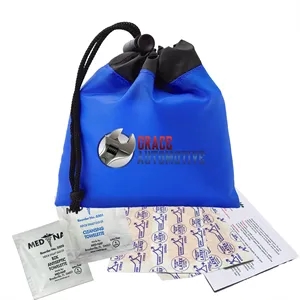 Cinch Tote First Aid kit. Brightly colored polyester drawstring bag - Convenient, compact and excellent for trade show giveaways.