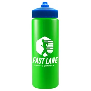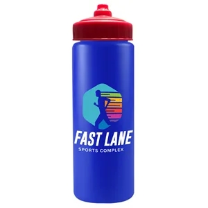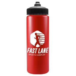 The Sports Quart - 32 oz. Sports Bottle. Hands-free valve lid for a quick drink during the game reseals automatically.