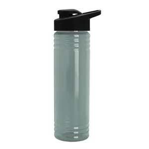 24 oz. Slim Fit UpCycle rPET Bottle with Drink-thru lid. Molded from 100% Post-consumer Recycled rPET.