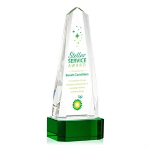 The Optical Crystal Geneva VividPrint™ Award on base is an obelisk that features interchanging bevels.